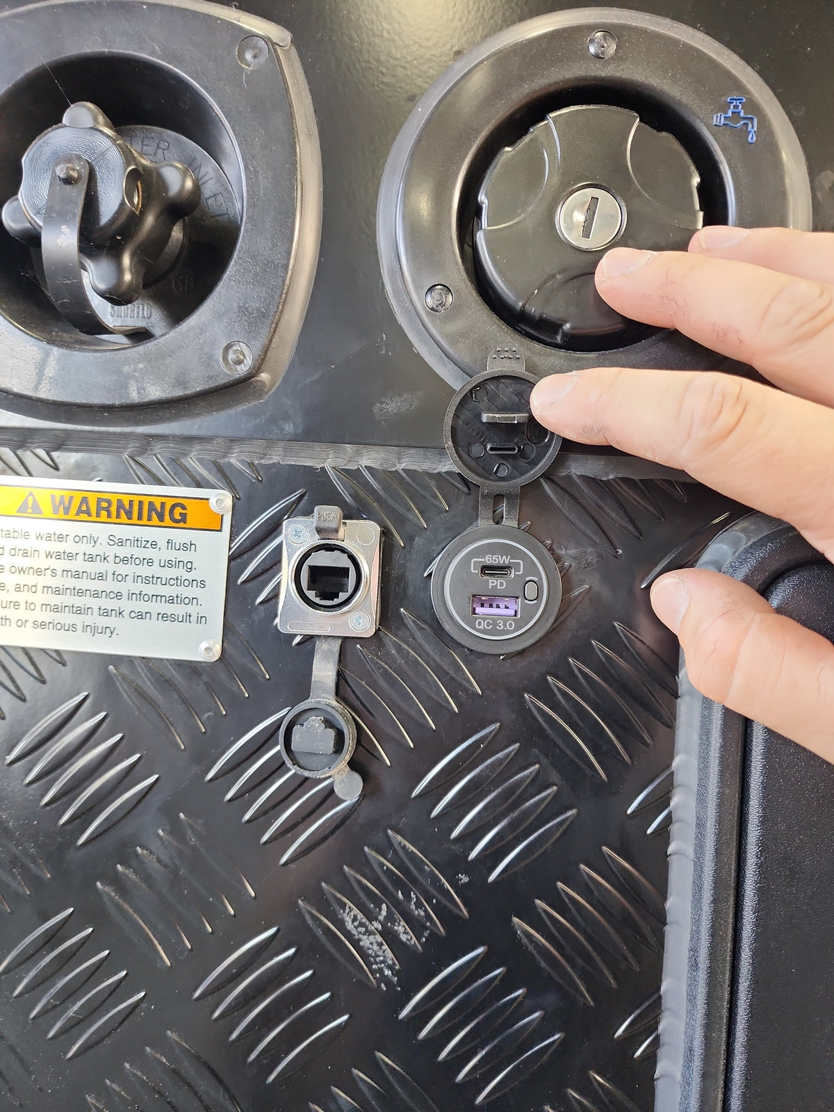 Roof mounts, clean passthrough cabling for standard and Mini, and 12 V conversions for efficient power use. Preplanned quick connection points enable a roof mounted dish to be removed and redeployed with minimal hassle. Available as standalone installs or integrated into full electrical systems.