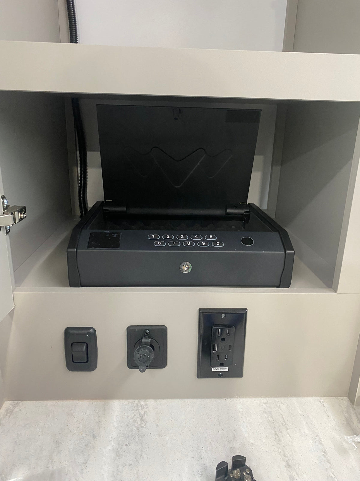 Custom gun safe installations for vans, RVs, and overland rigs. Secure, tamper resistant mounting and thoughtful placement maintain accessibility for adults while restricting access by children. Options include keyed or electronic locks, reinforced backing plates, and integration with cabinetry. Travel with peace of mind knowing firearms are stored responsibly.